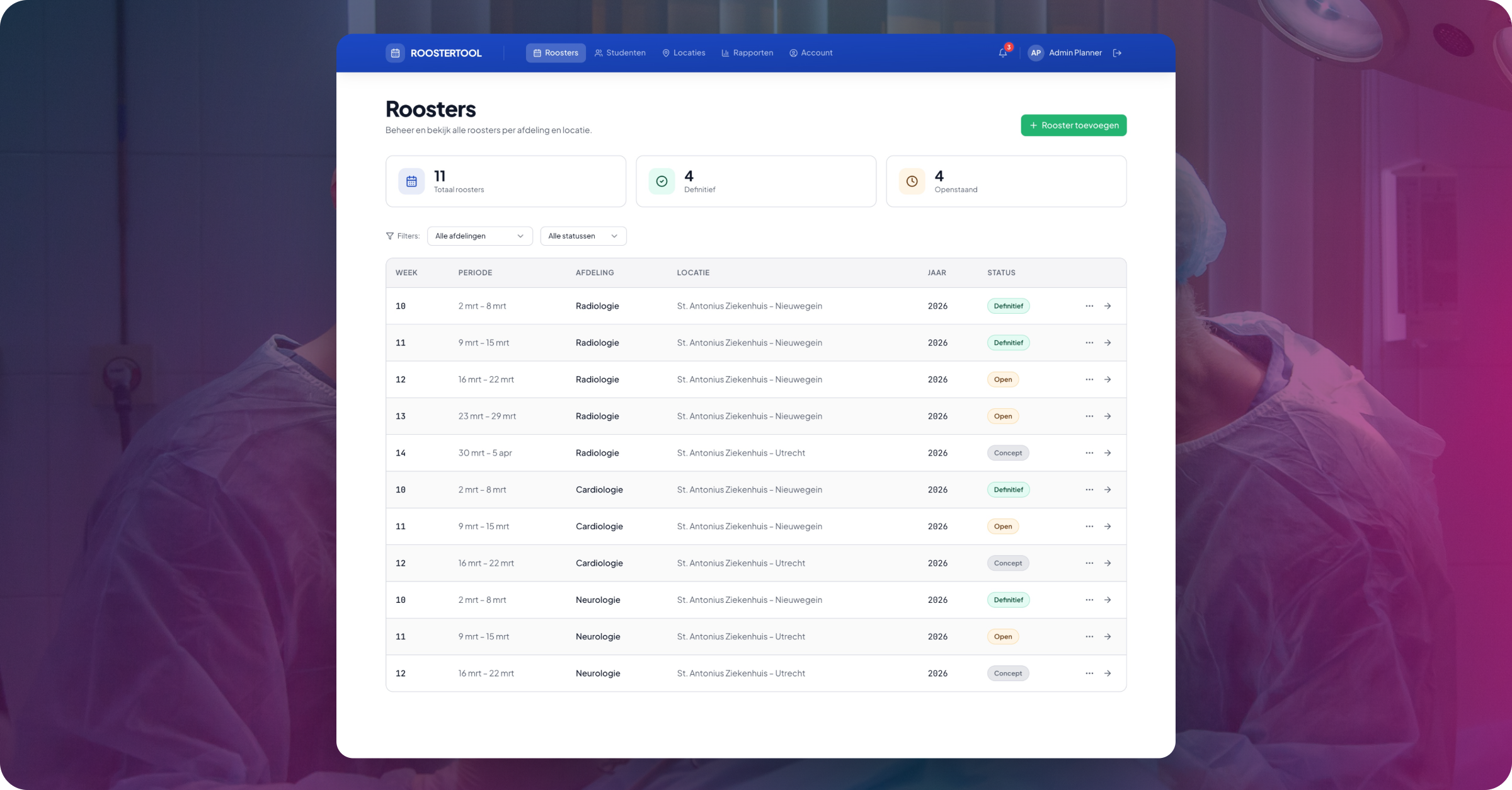 Onze opdrachtgever werkt dagelijks met grote aantallen medewerkers die worden ingezet op verschillende afdelingen en teams binnen het St. Antonius Ziekenhuis. Planning en afstemming verlopen daarbij vaak handmatig, met behulp van Excelbestanden, losse systemen en veel onderlinge communicatie via e-mail en telefoon. Dit leidt tot hoge administratieve lasten en weinig grip op capaciteit en inzet.
